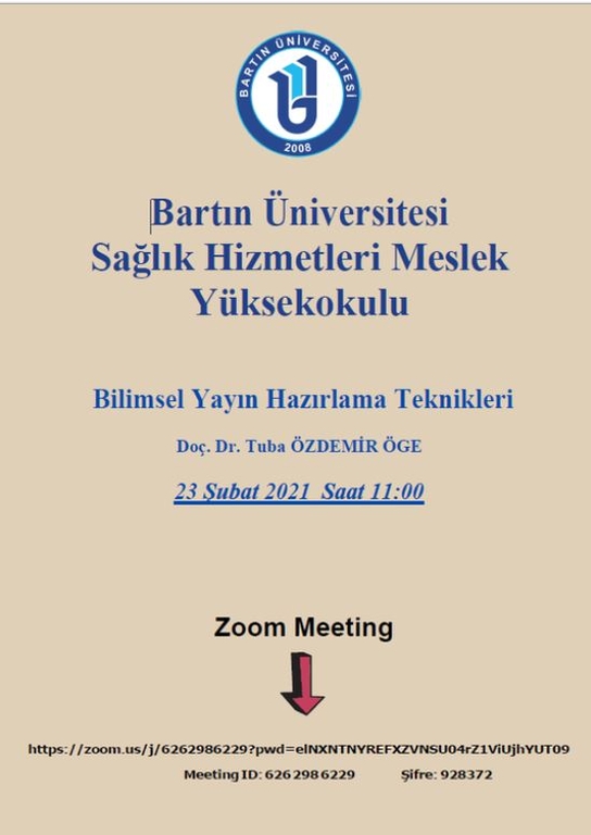 Zoom Erişim Linki: https://zoom.us/j/6262986229?pwd=elNXNTNYREFXZVNSU04rZ1ViUjhYUT09-
